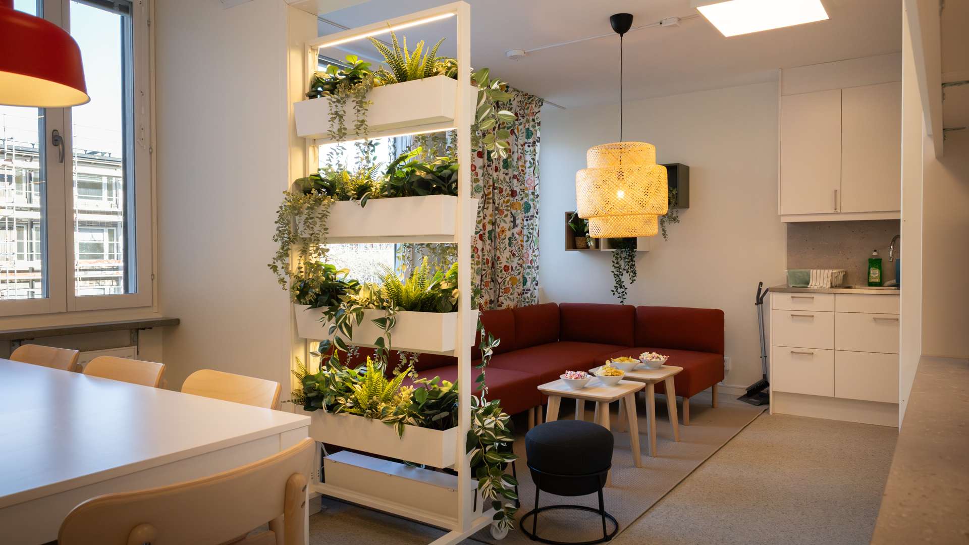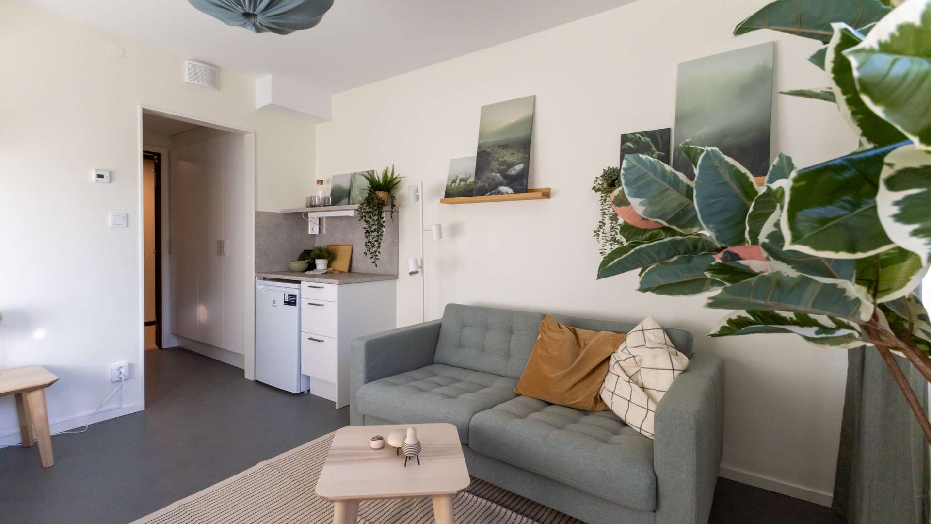 Även gemensamhetsytorna har fått ett rejält lyft. Köken är helt nyrenoverade och i anslutning till köksdelen finns mysiga häng-ytor där du kan samla vännerna för både plugg och middagar.